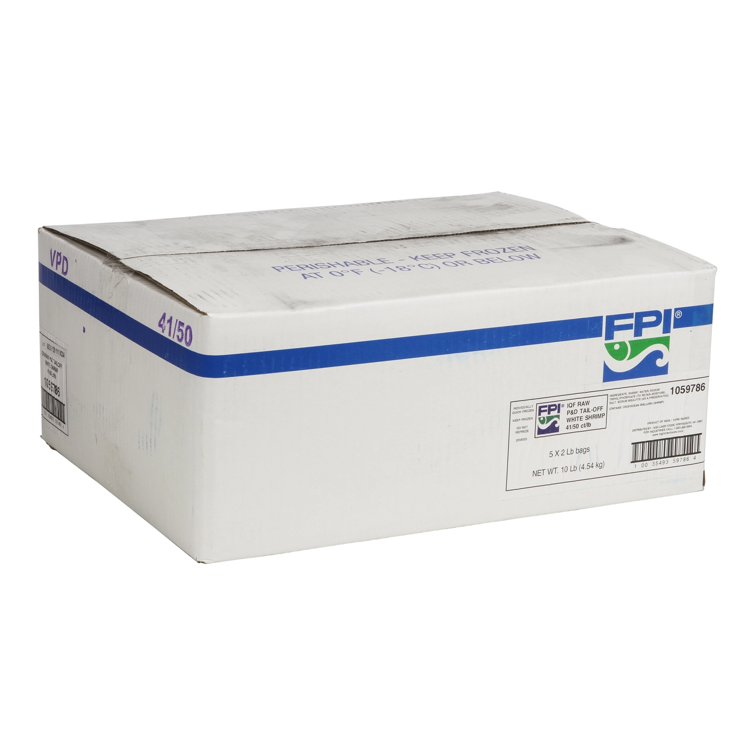10 Lb (4.54 kg) IQF Raw P&D Tail-Off White Shrimp 41-50 ct/lb, 5 x 2 Lb bags