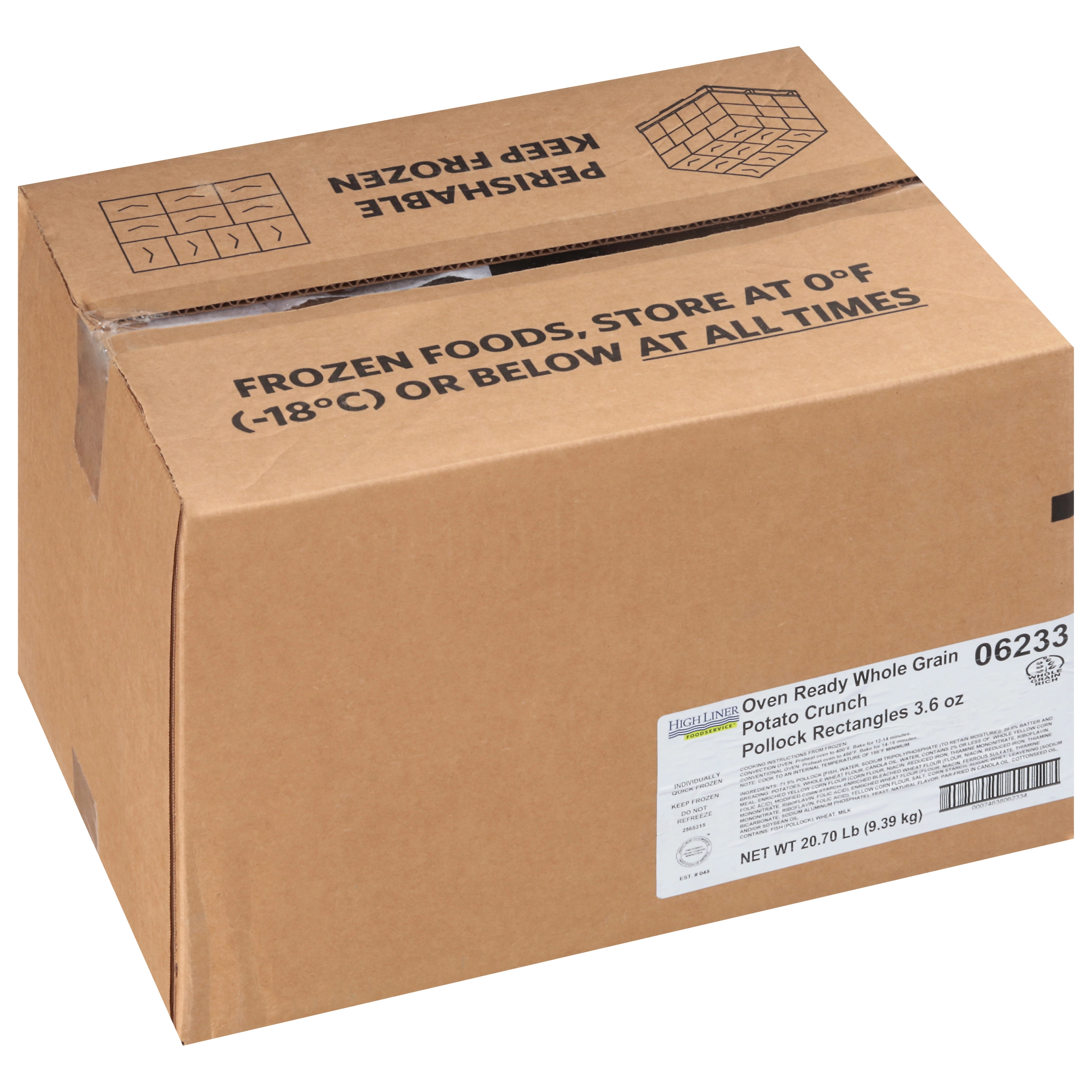 20.70 Lb (9.39 kg) Oven Ready Whole Grain Potato Crunch Pollock Portions 3.6 oz, CN, MSC