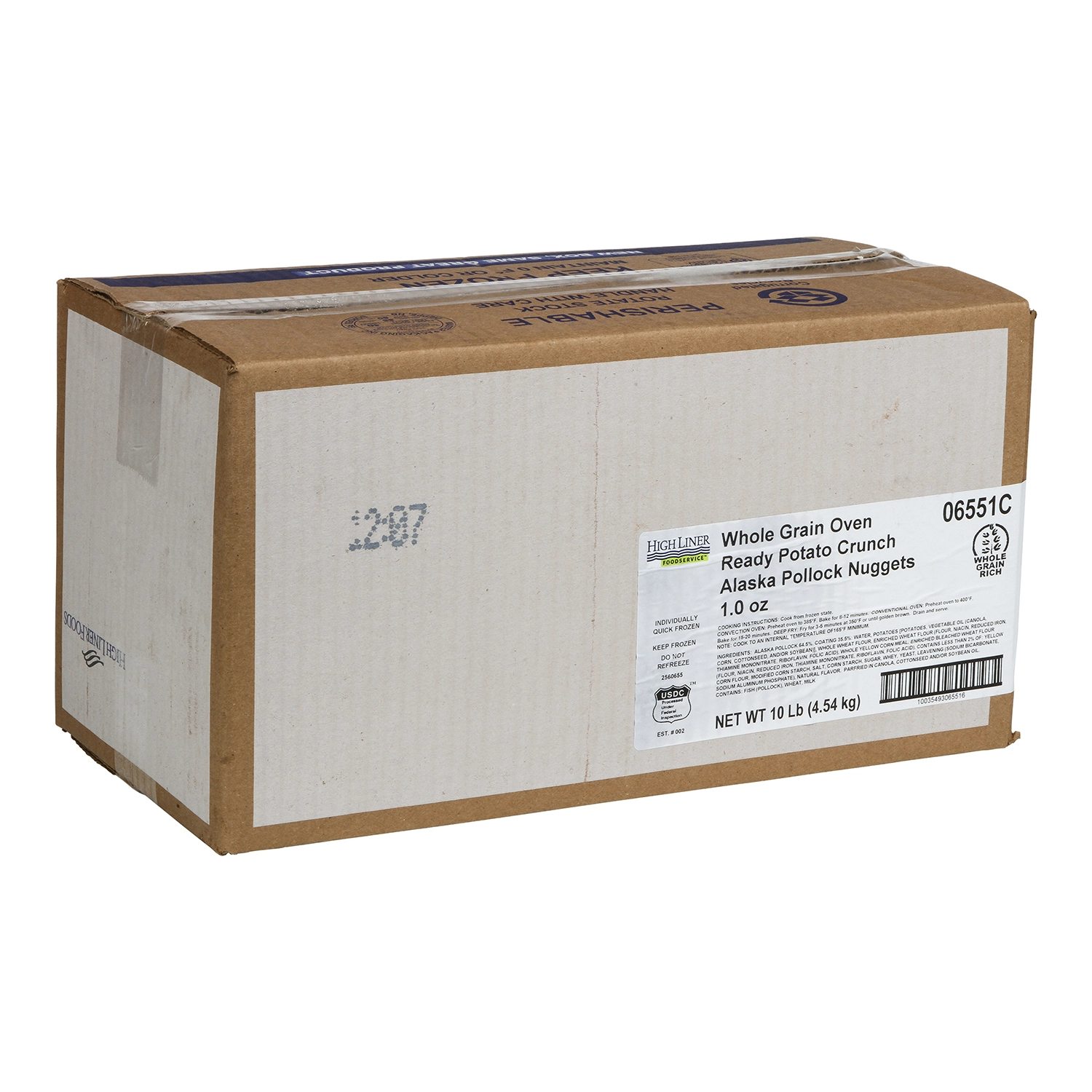 High Liner Whole Grain Potato Crunch Alaska Pollock Nuggets add real potato sticks to the whole grain breading for a distinct flavor and super crunchy-fun bite kids and adults can’t resist. Made from premium wild caught Pollock, these oven-ready, portion-controlled nuggets bake from frozen to golden potato-crispy perfection in minutes with no mess. A truly unique option for Child Nutrition-approved applications and more.