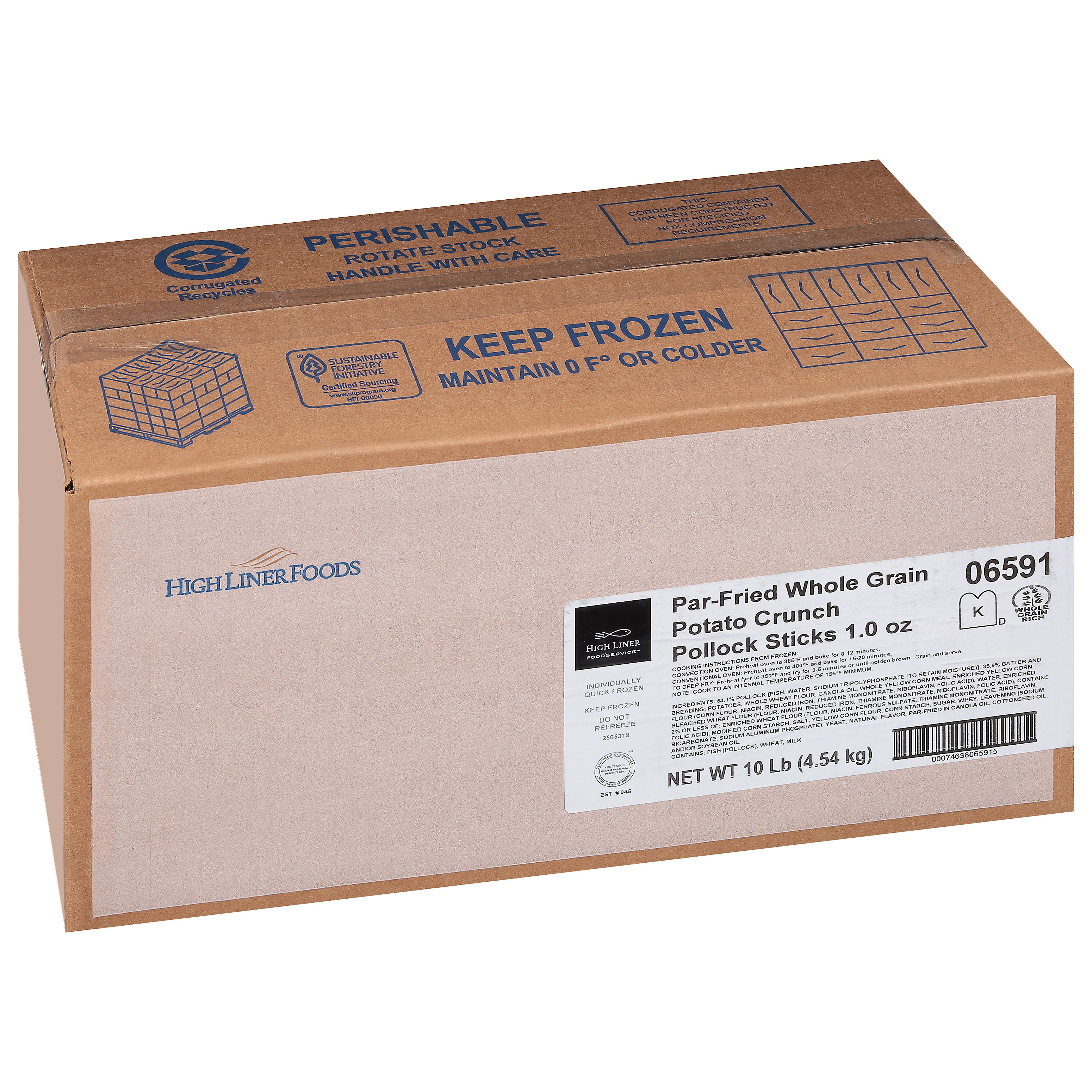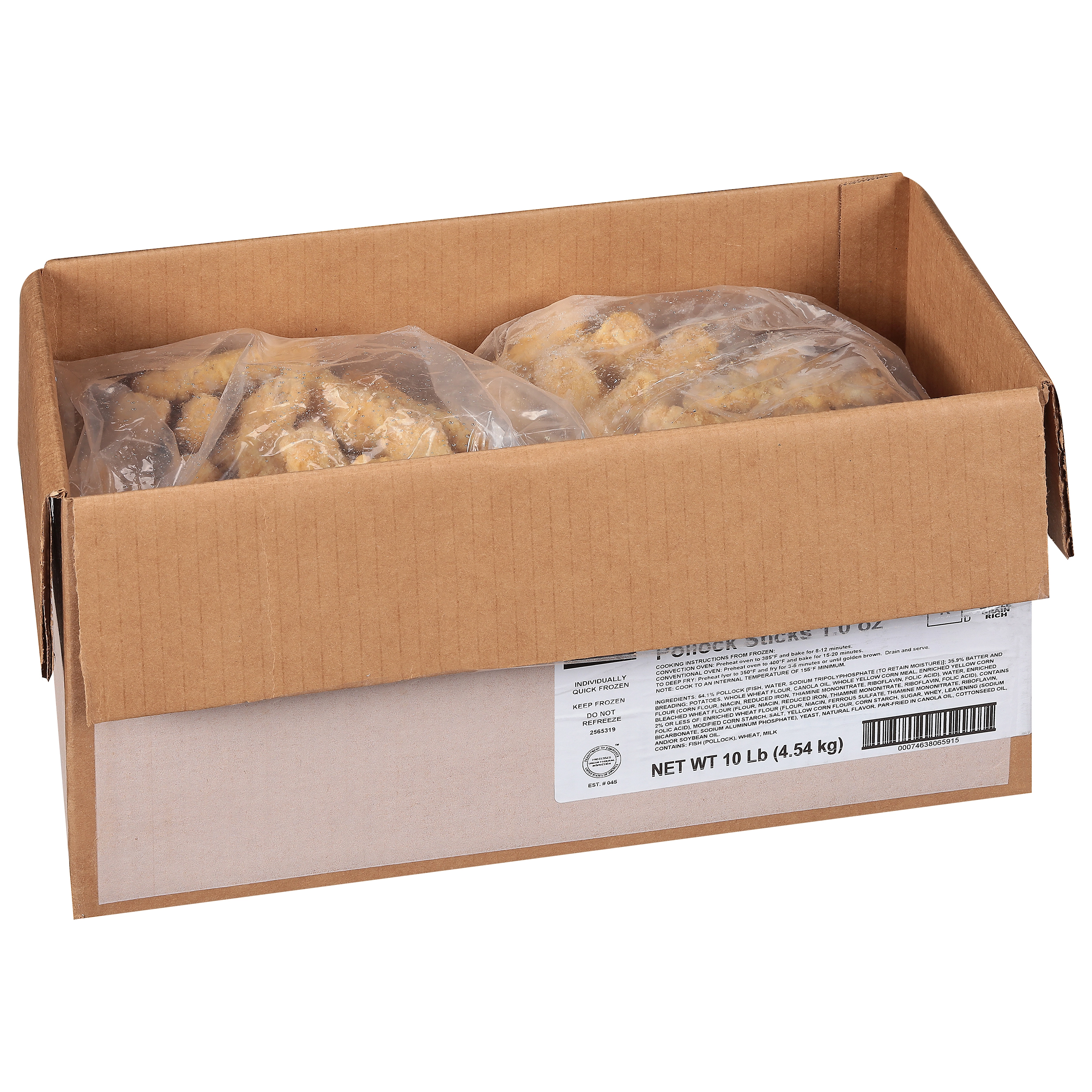 10 Lb (4.54 kg) Par-Fried Whole Grain Potato Crunch Pollock Sticks 1.0 oz, Kosher, CN, MSC