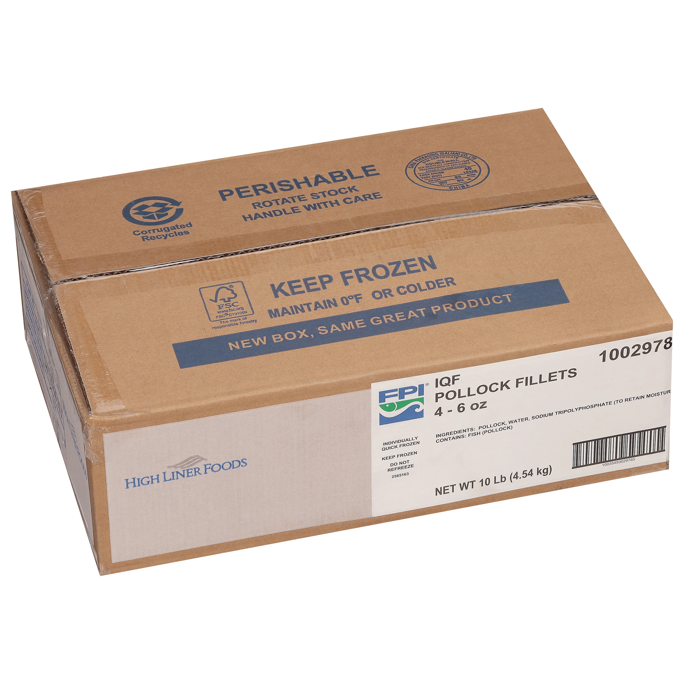 10 Lb (4.54 kg) IQF Pollock Fillets 4 - 6 oz, MSC