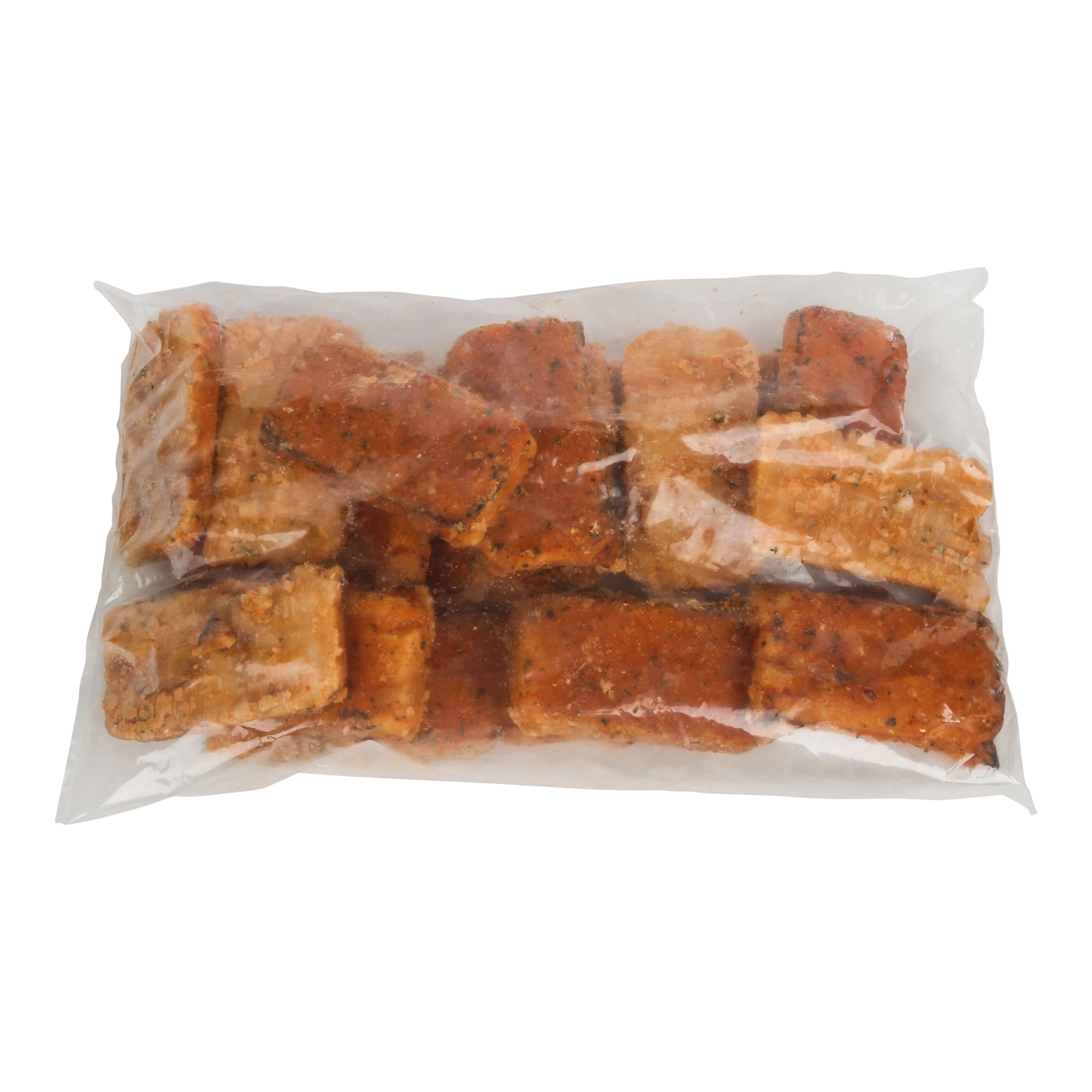 INGREDIENTS: ALASKA POLLOCK, WATER, CONTAINS 2% OR LESS OF: VEGETABLE OIL (CANOLA OIL, SOYBEAN OIL, AND SUNFLOWER OIL), PALM OIL, GELATIN, SALT, SUGAR, SPICES, CILANTRO, DEHYDRATED ONION, DEHYDRATED GARLIC, DEHYDRATED RED BELL PEPPER, NATURAL FLAVORS, MALTODEXTRIN, MODIFIED CORN STARCH, VINEGAR SOLIDS, GRILL FLAVOR (FROM SUNFLOWER OIL), NATURAL SMOKE FLAVOR.