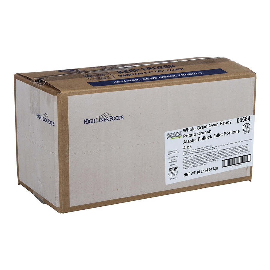 High Liner Oven Ready Whole Grain Potato Crunch Pollock Portions add real potato sticks to the breading for a distinct flavor and extra crunchy bite kids and adults can’t resist. Each wild caught, oven-ready, portion bakes from frozen to golden crispy perfection in minutes with no mess. A truly unique option for Child Nutrition-approved applications and more.