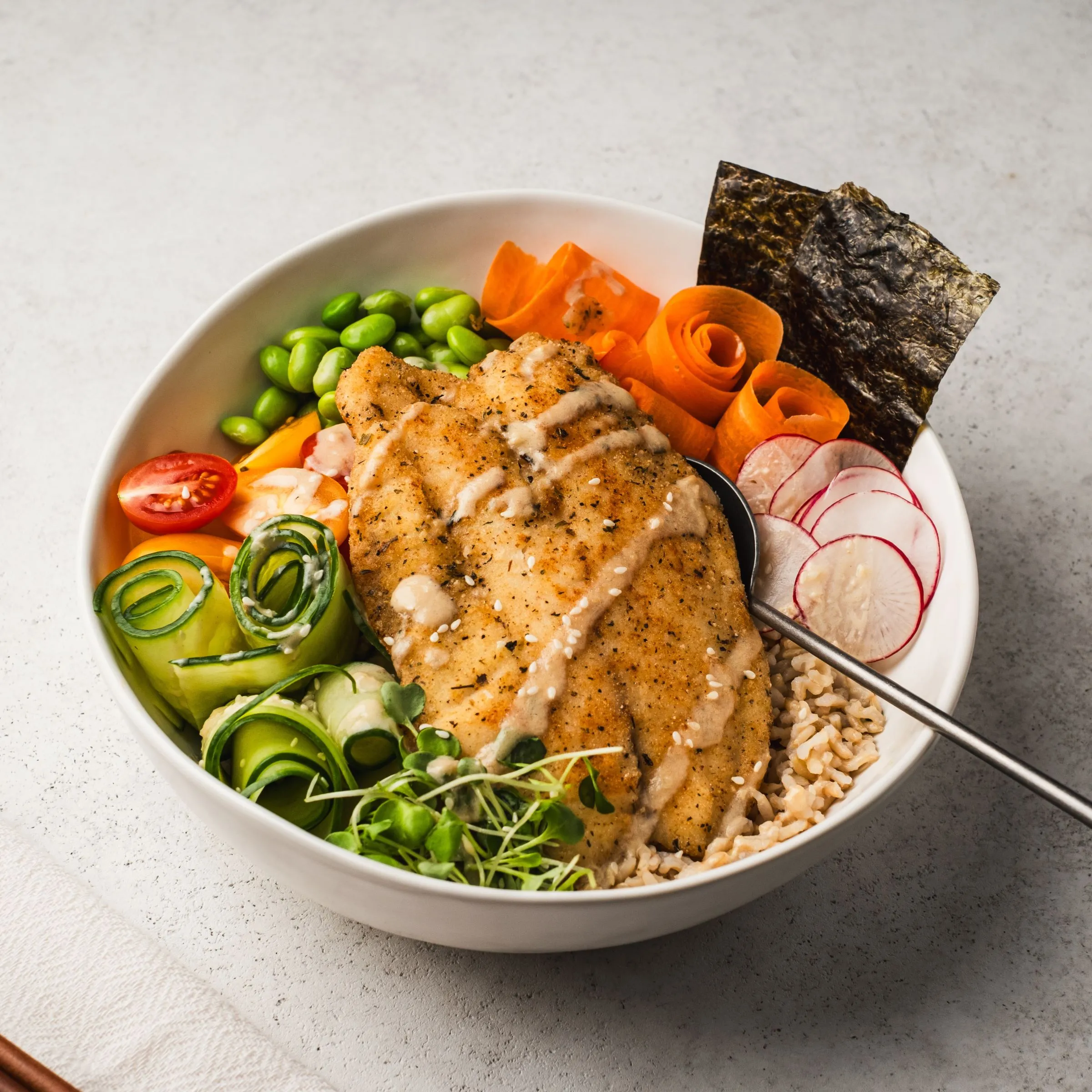 TILAPIA, VEGETABLE OIL (CANOLA OIL, COTTONSEED OIL, AND/OR SOYBEAN OIL), MODIFIED CORN STARCH, RICE FLOUR, WATER, CONTAINS 2% OR LESS OF: ROASTED GARLIC, SALT, SPICES, DISODIUM GUANYLATE, DISODIUM INOSINATE, MALTODEXTRIN, SUGAR, GREEN ONION, NATURAL FLAVOR, SOY LECITHIN.