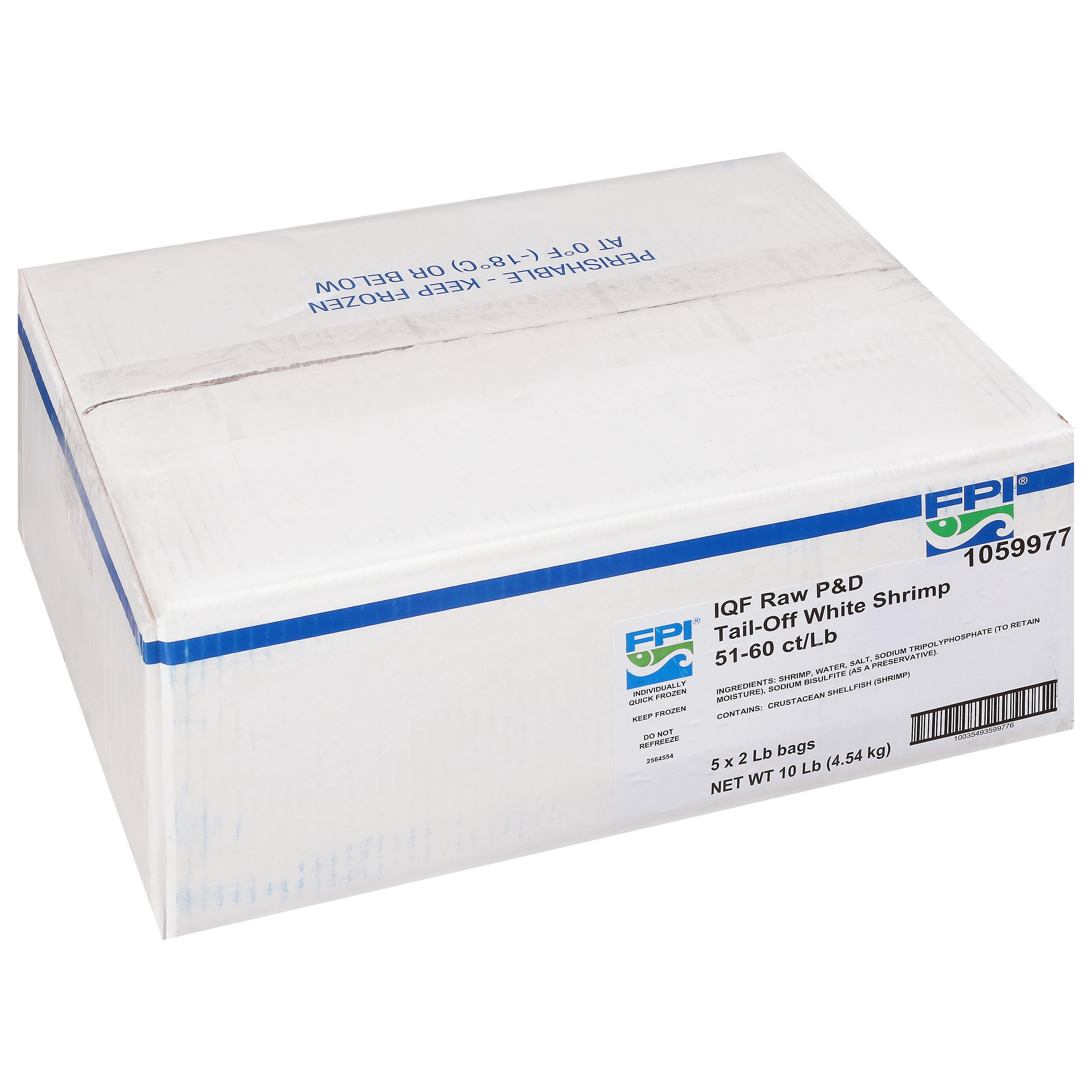 10 Lb (4.54 kg) IQF Raw P&D Tail-Off White Shrimp 51-60 ct/lb, 5 x 2 Lb bags
