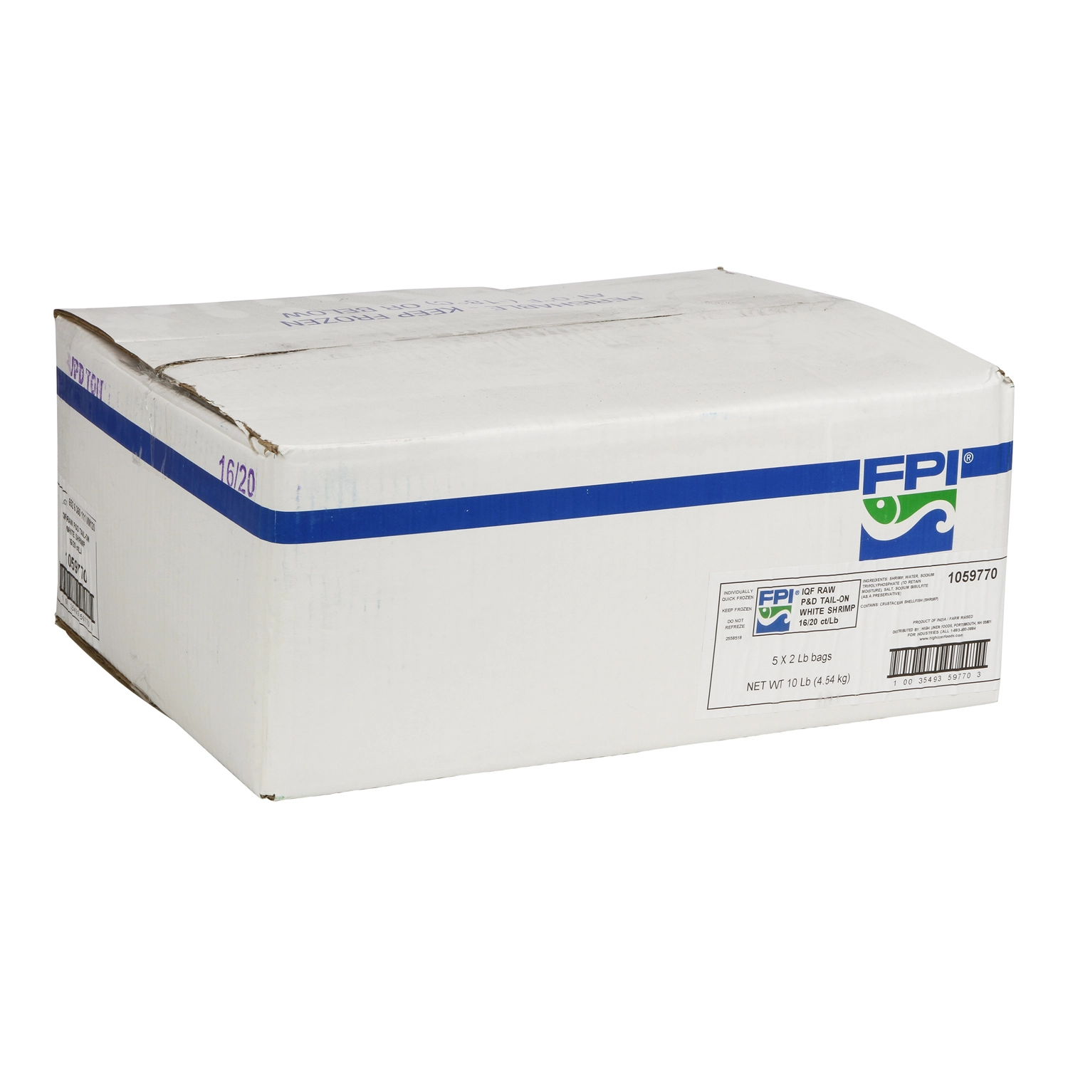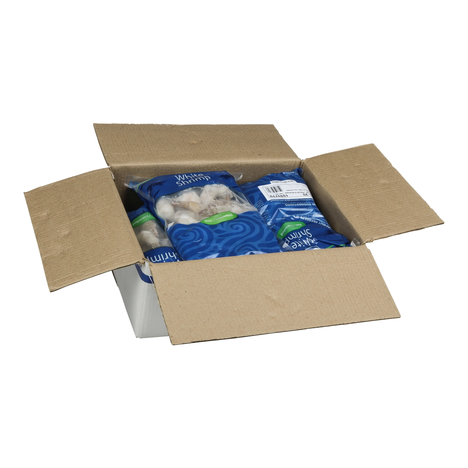 10 Lb (4.54 kg) IQF Raw Peeled & Deveined Tail-On White Shrimp 16-20 ct/lb, 5 x 2 Lb bags