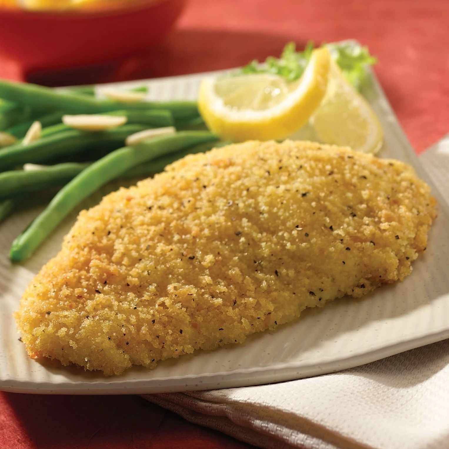 FPI Butter Crumb Lemon Pepper Tilapia Fillets are lightly coated with a lemon pepper inspired traditional butter crumb. The breading adds a uniquely rich crispness, sealing in the Tilapia’s mildly-sweet flavor and medium-firm texture, with a lemon pepper punch that’s hard to resist. Each oven-ready fillet easily cooks from frozen, and delivers beautiful plate appeal across a variety of applications.